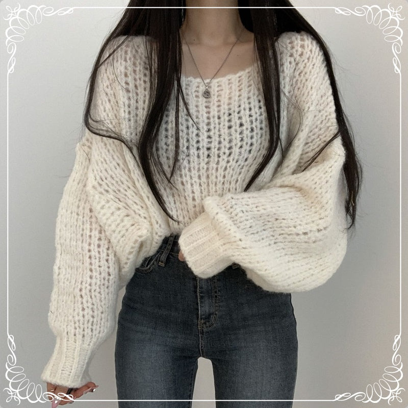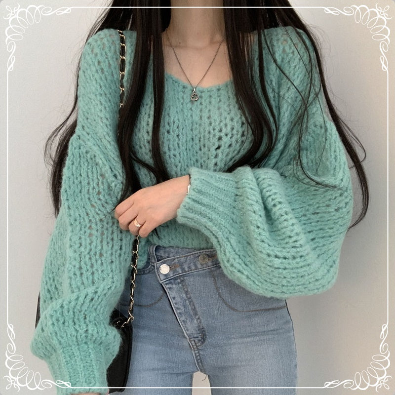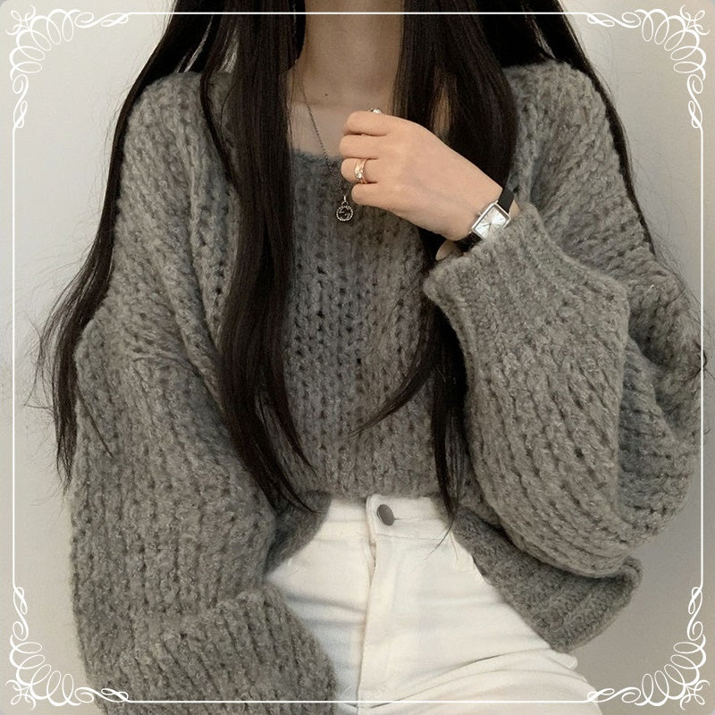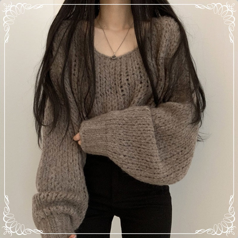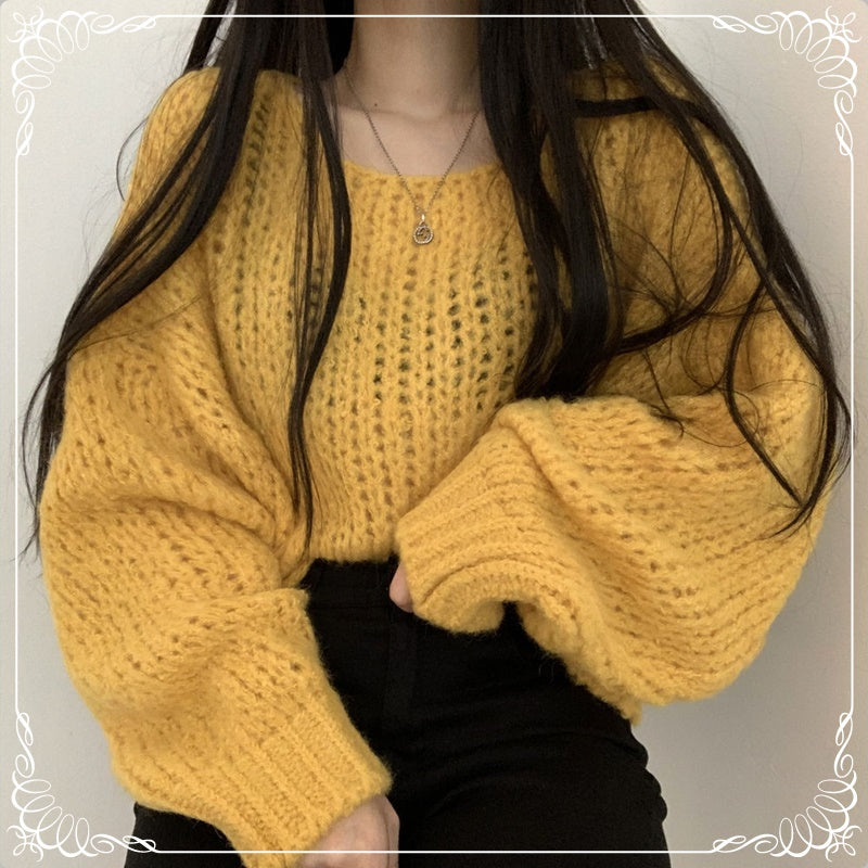 套头 粗针 灯笼袖