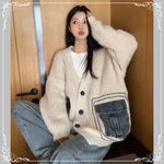 中长款 牛仔大口袋 V领 开衫
