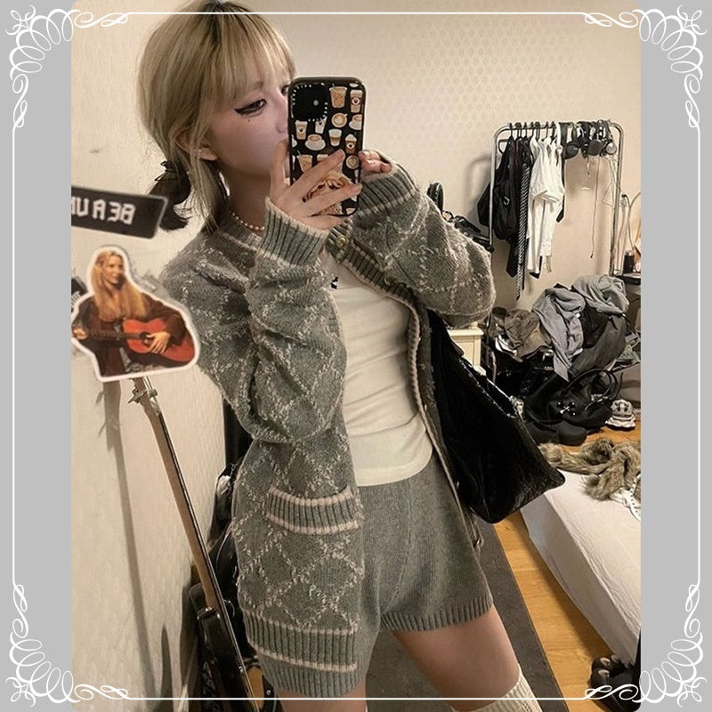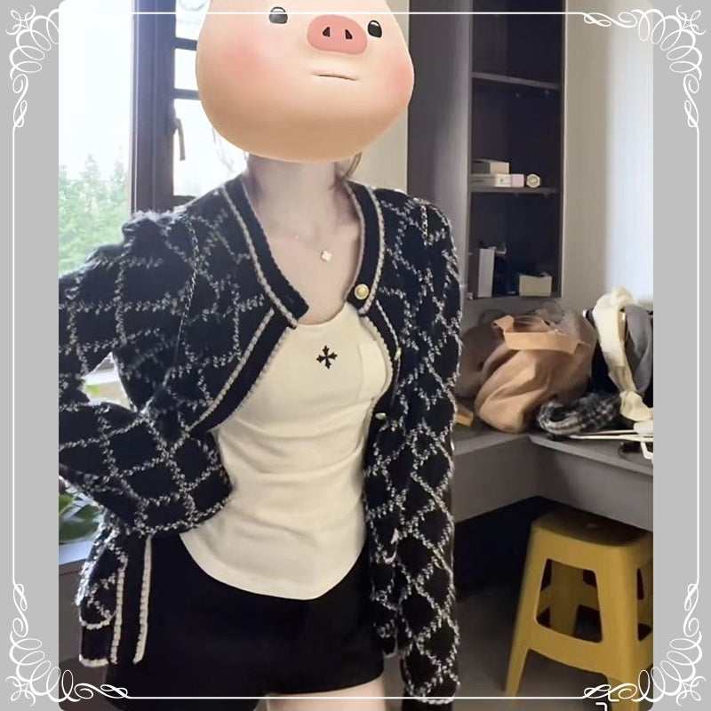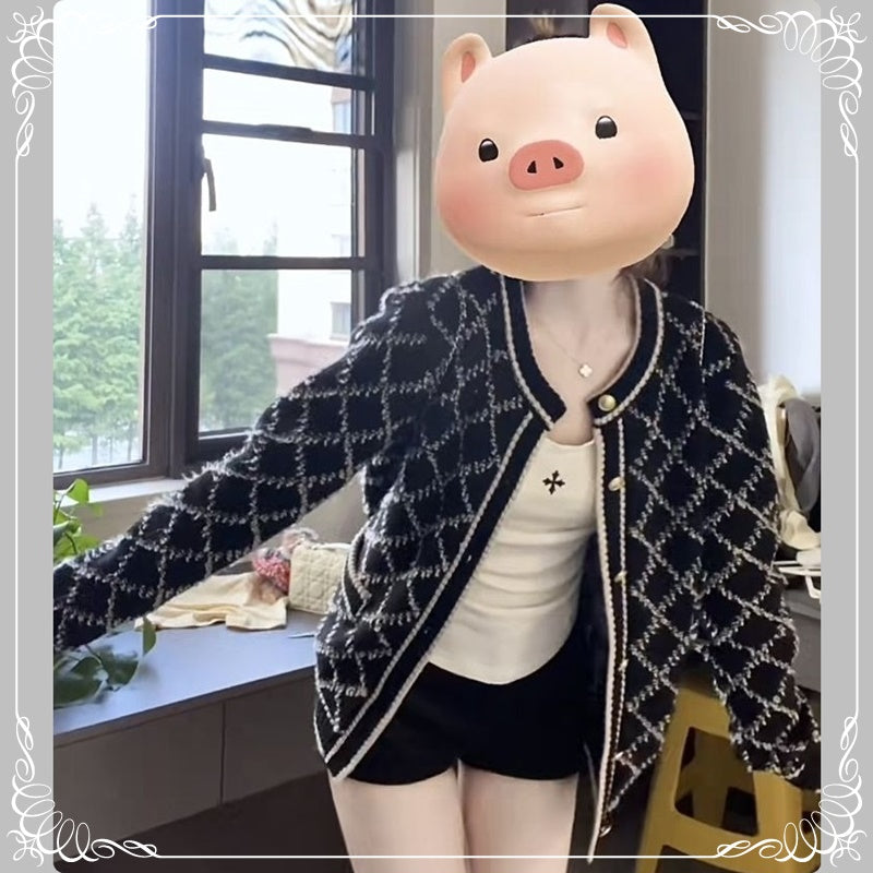 绵羊绒 毛巾绣 菱格 开衫