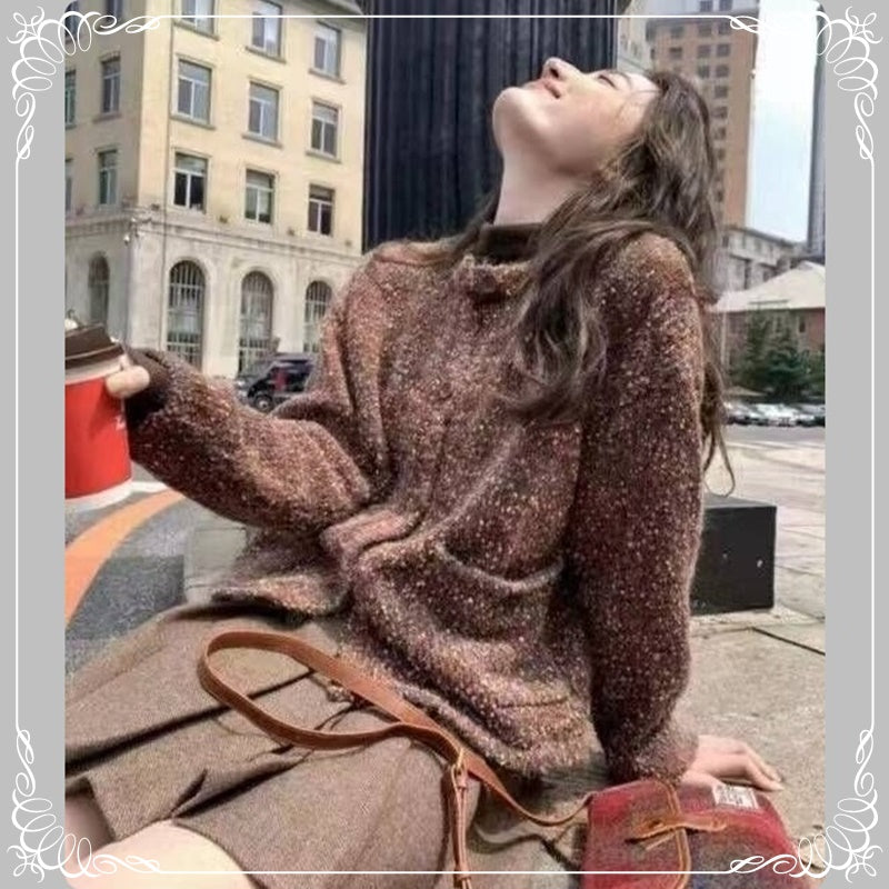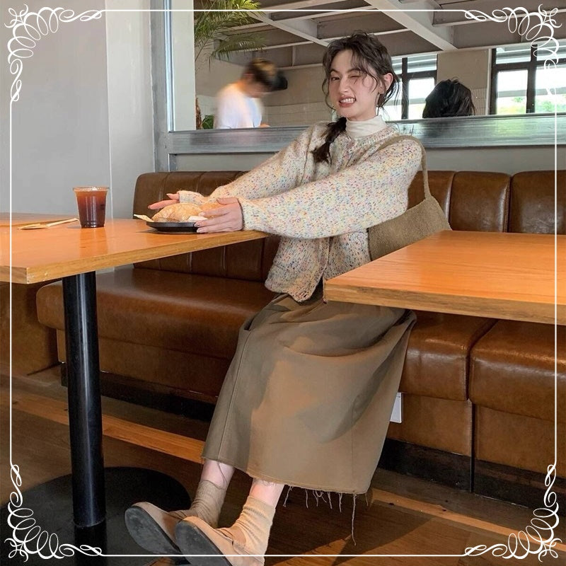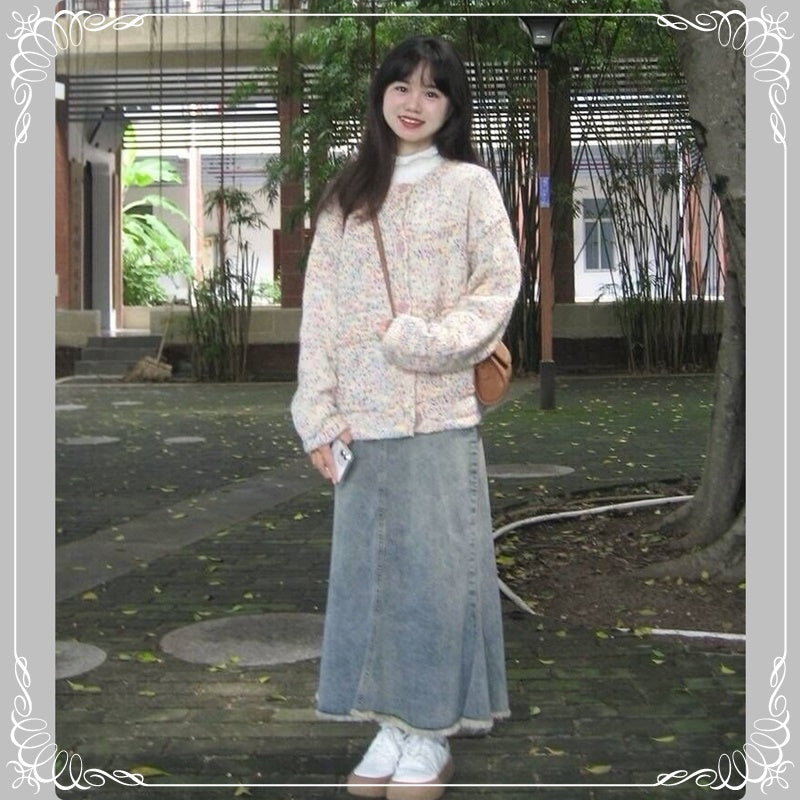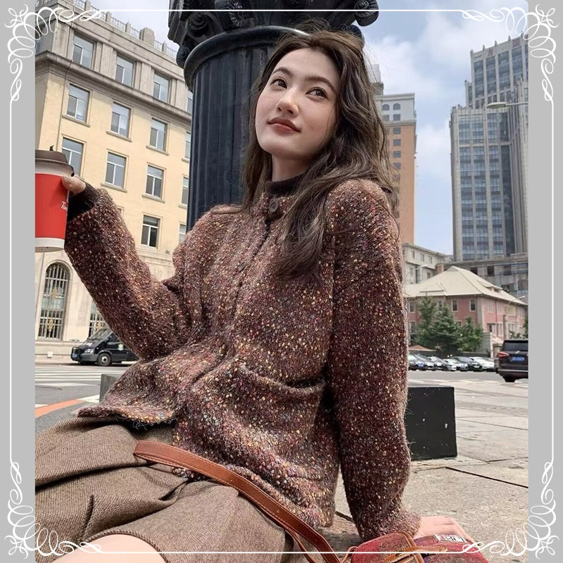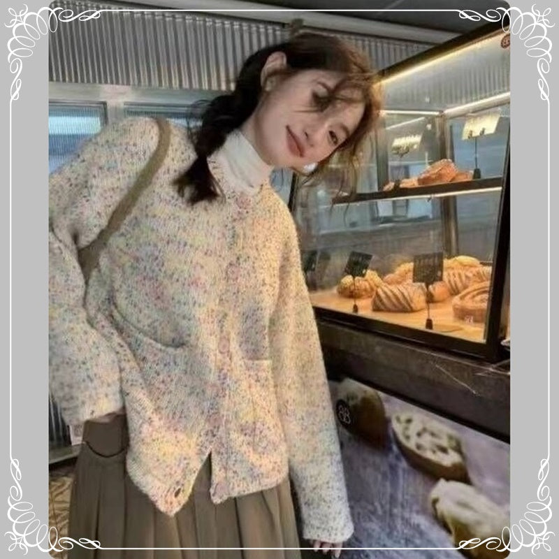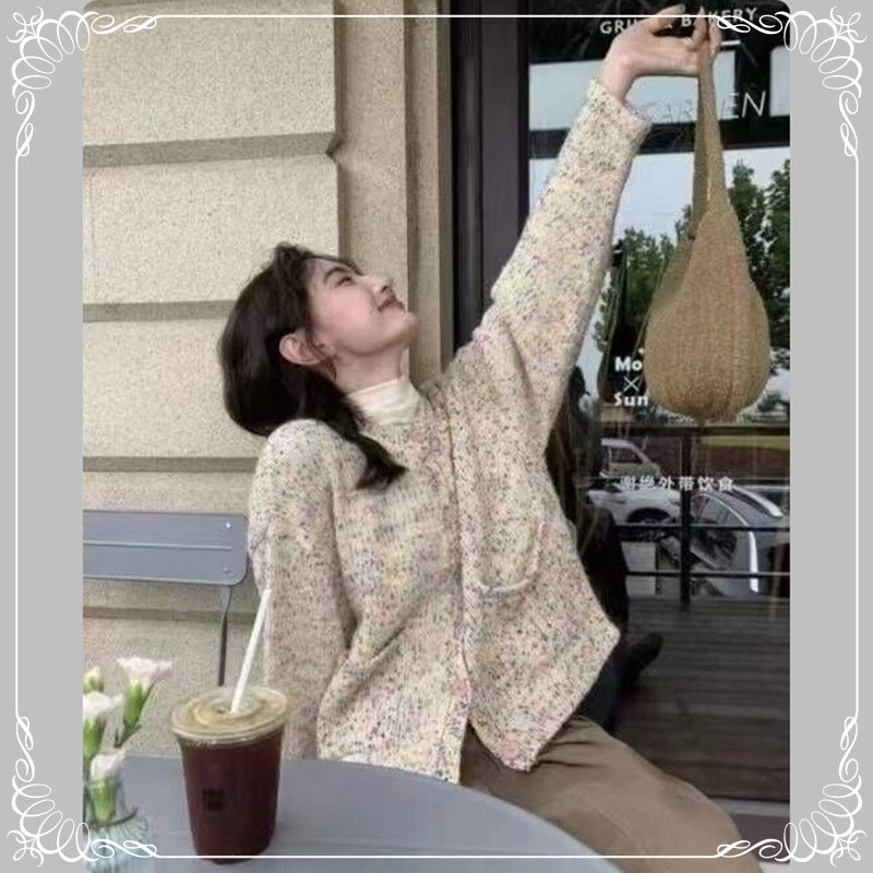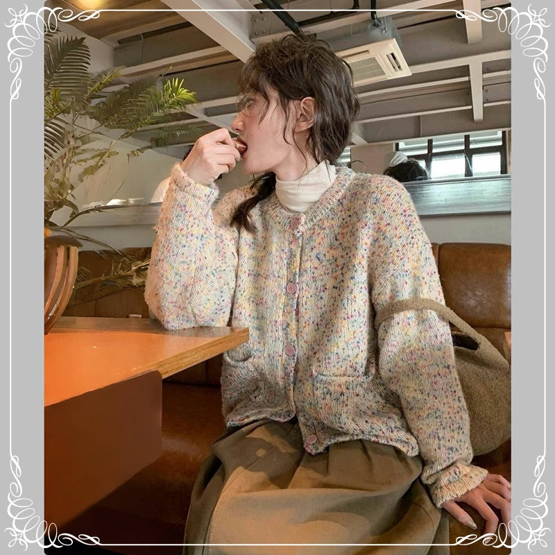 彩点 圆领 开衫