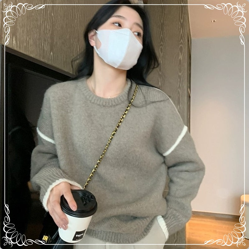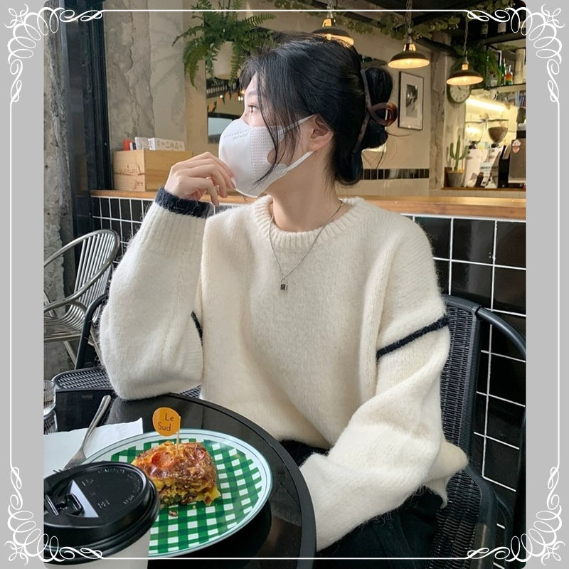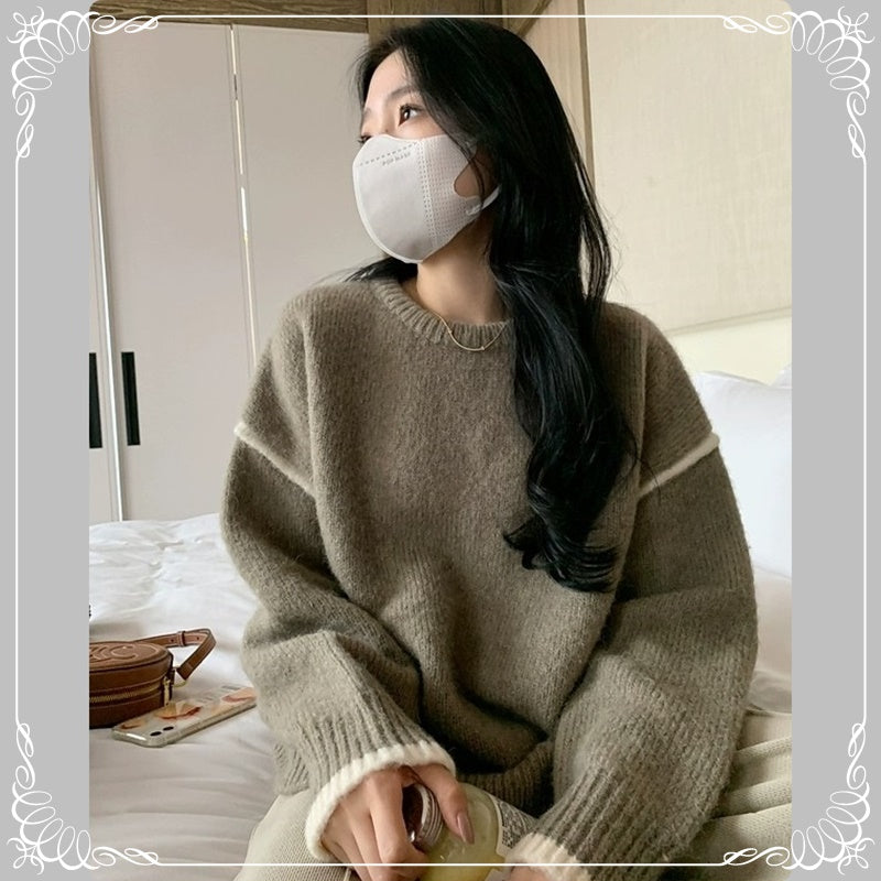 软糯 撞色 套头