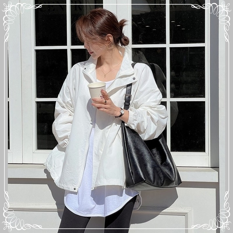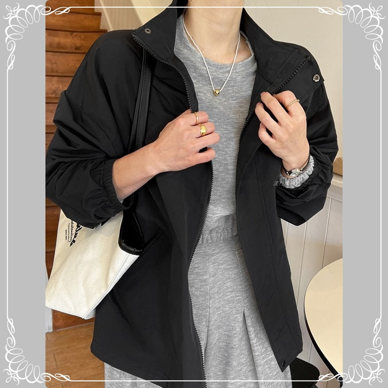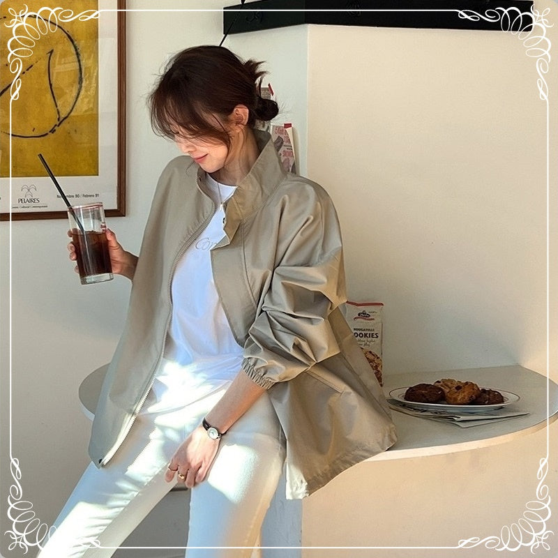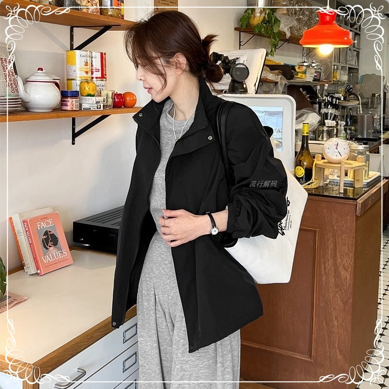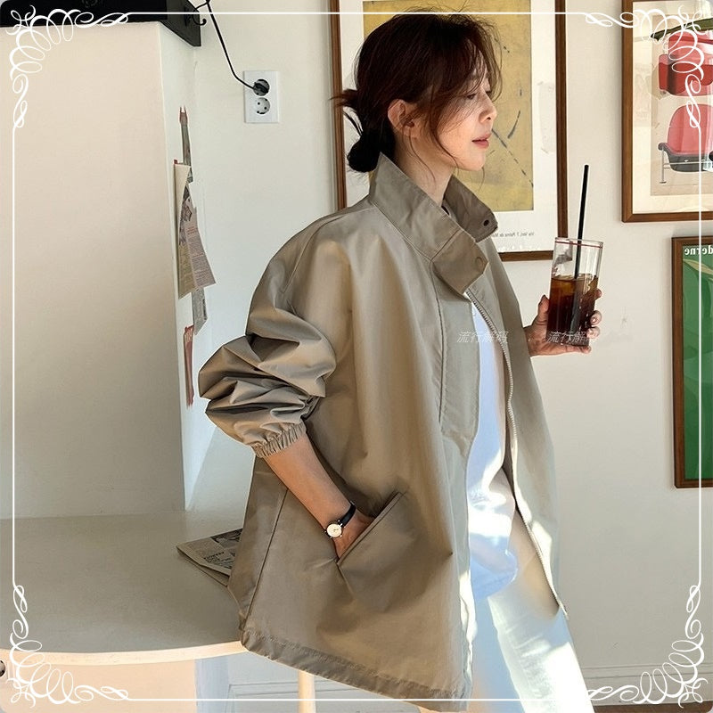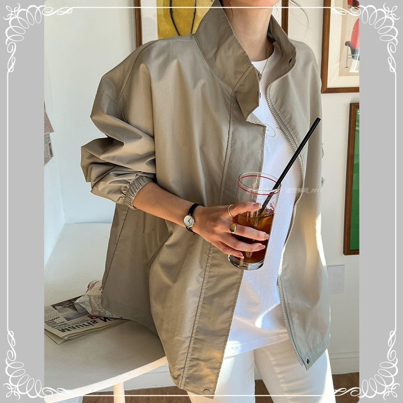 翻领 拉链 开衫 风衣外套