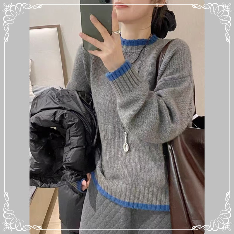 撞色 圆领 慵懒风 套头