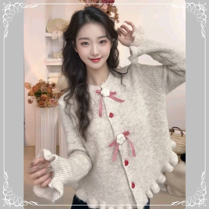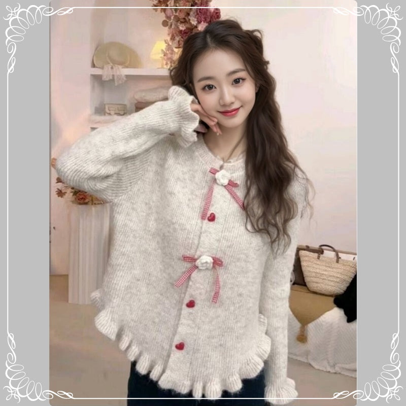 木耳边 蝴蝶结 开衫