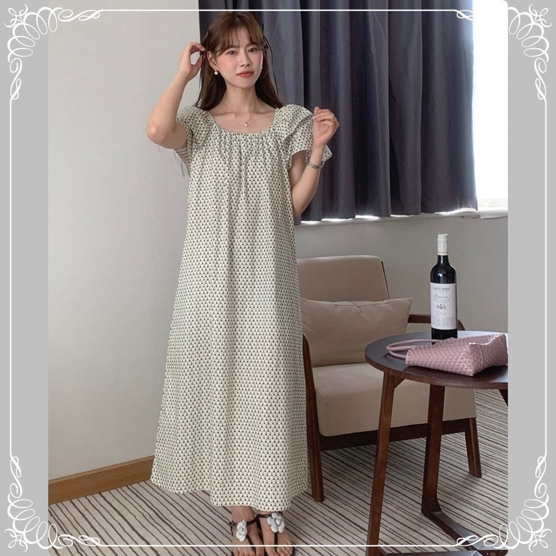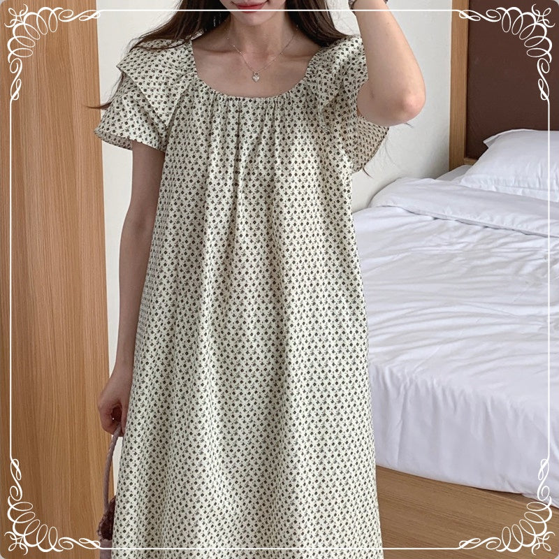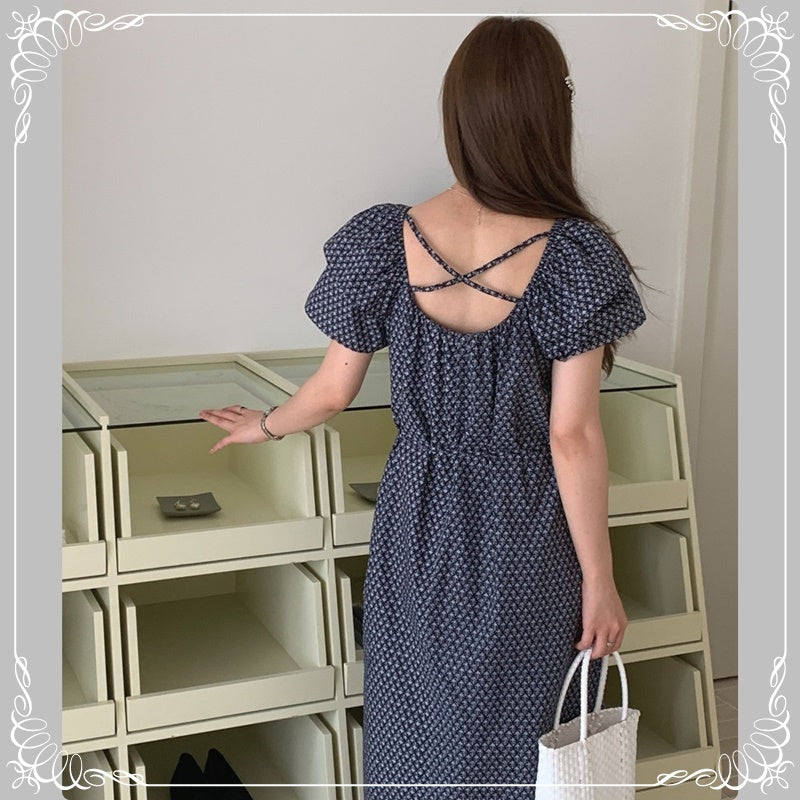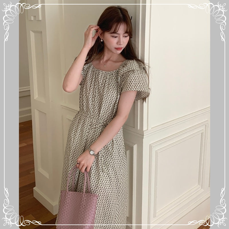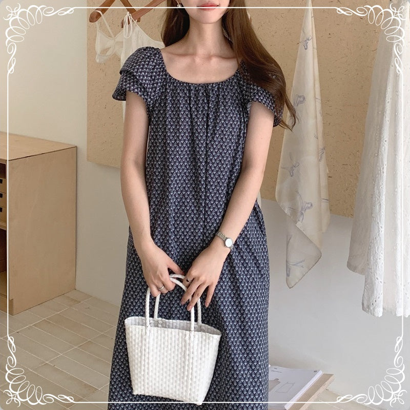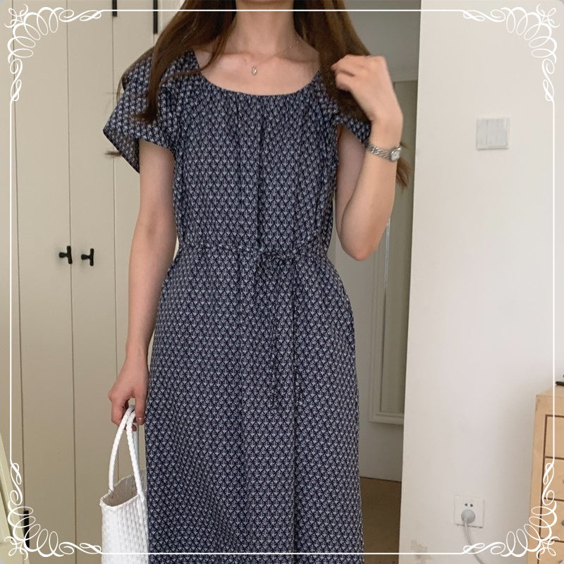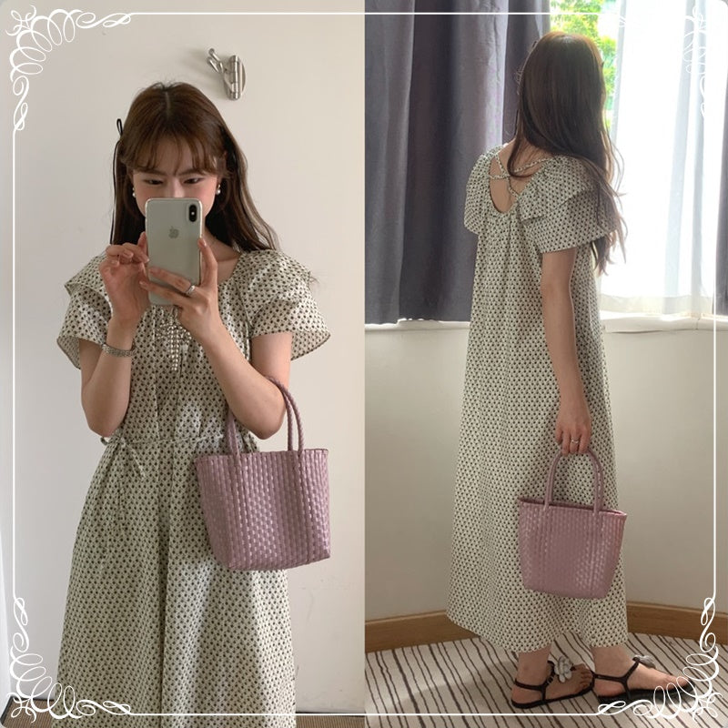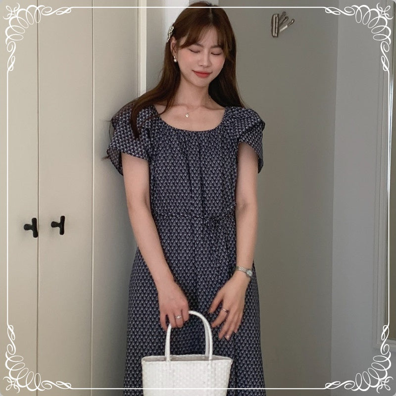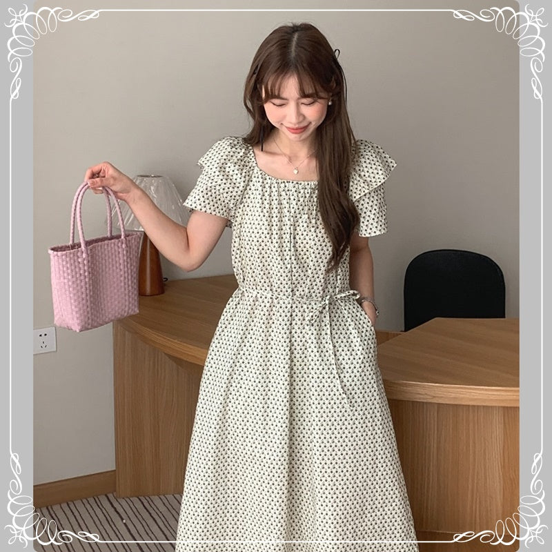 碎花 飞飞袖 系带