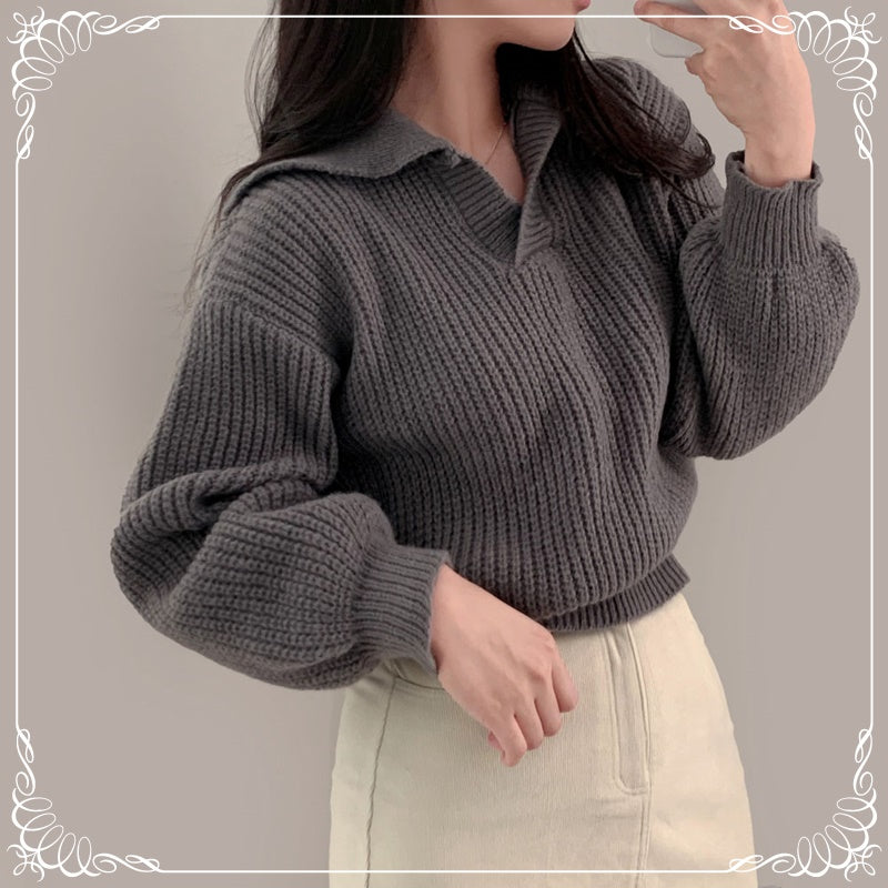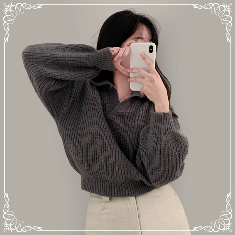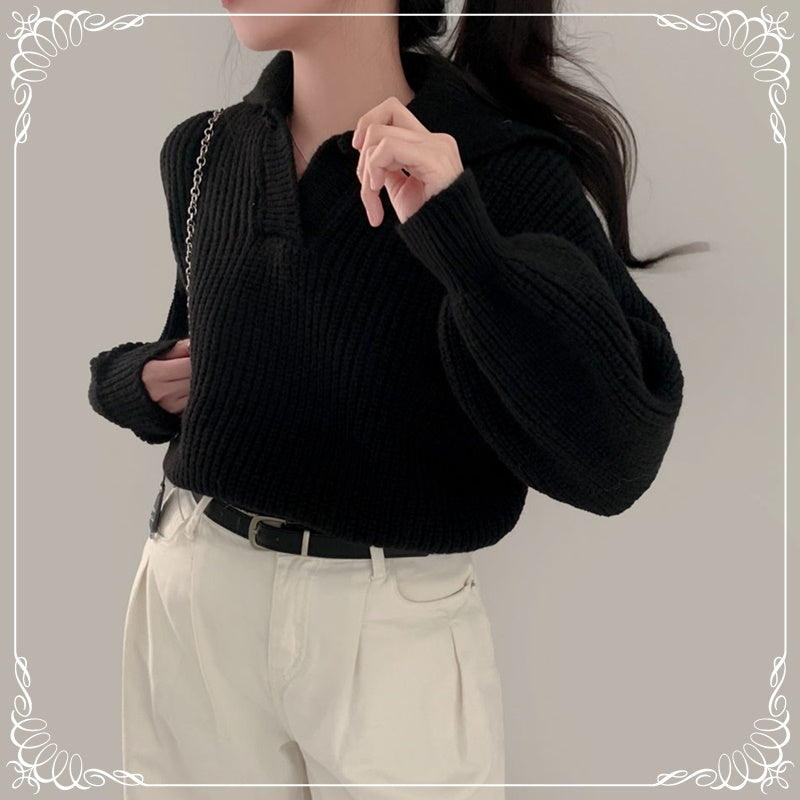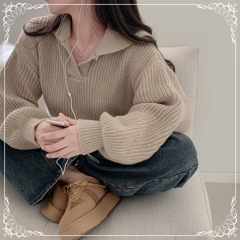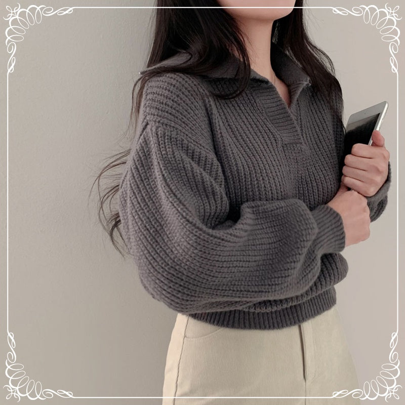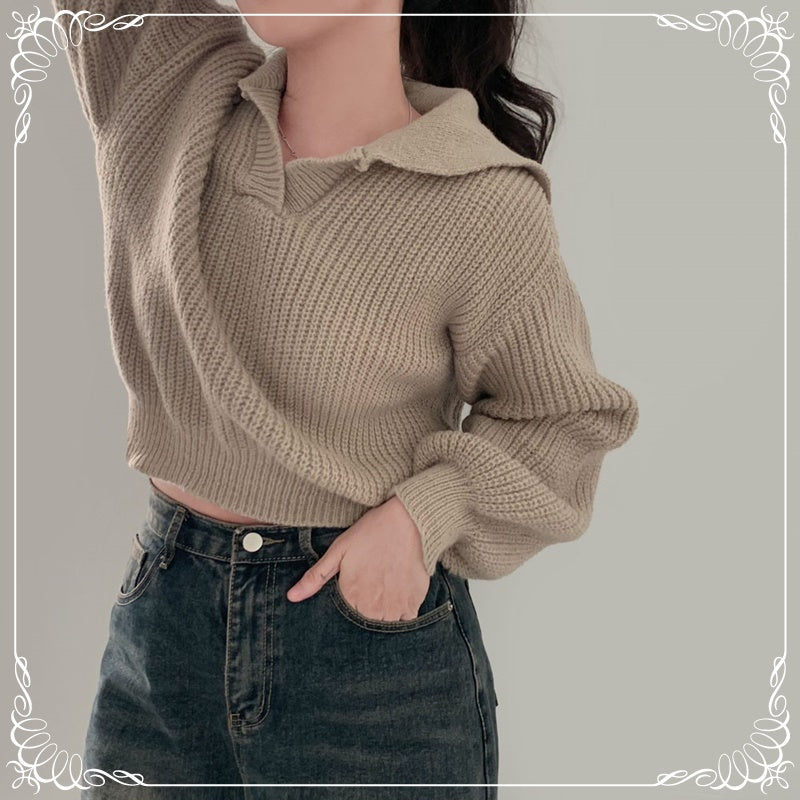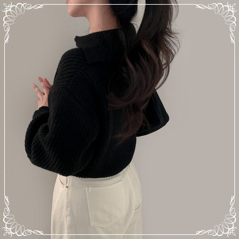 翻领 泡泡袖 短款 收腰