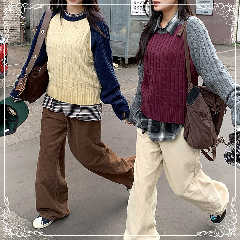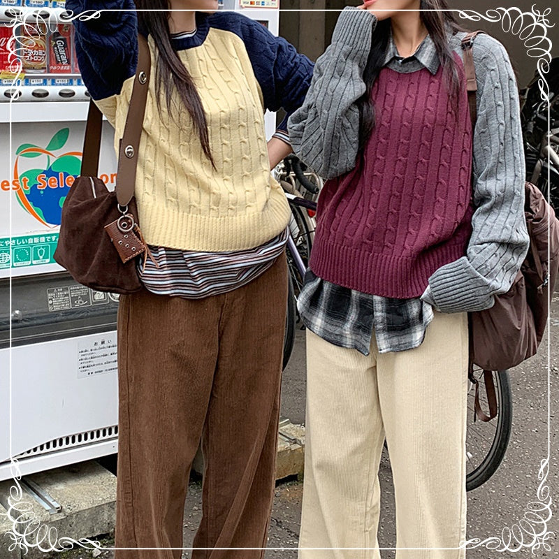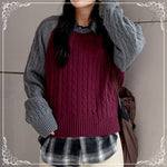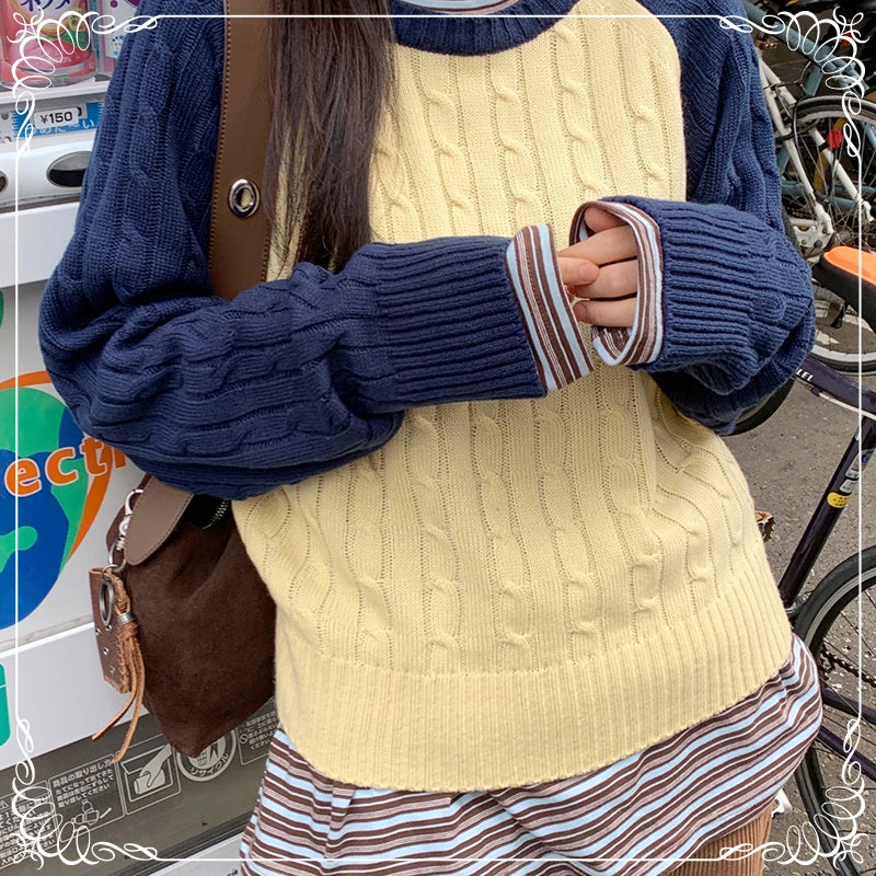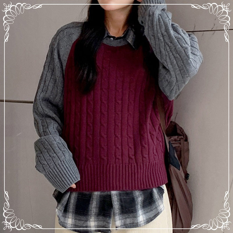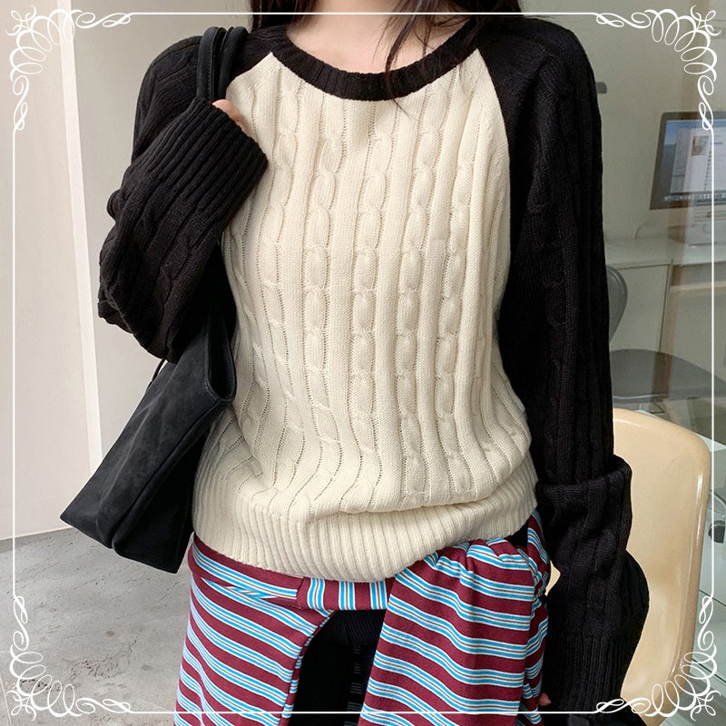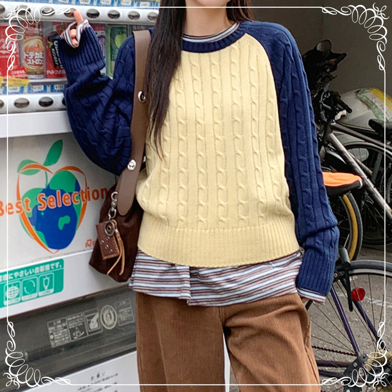 撞色 麻花 中长款 套头