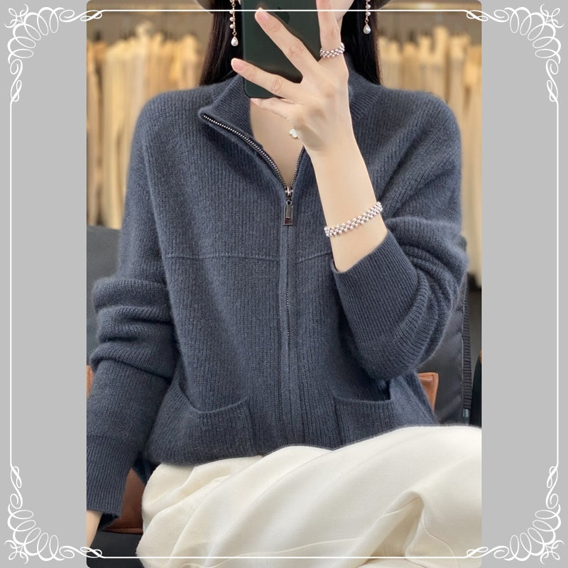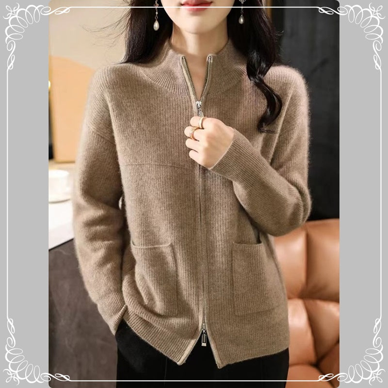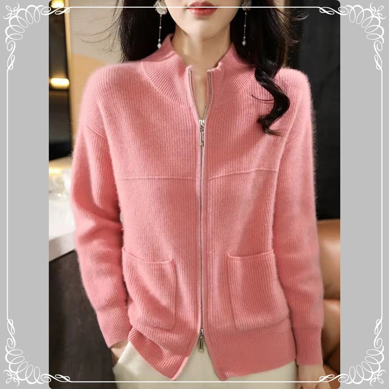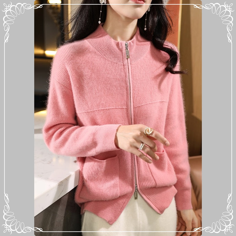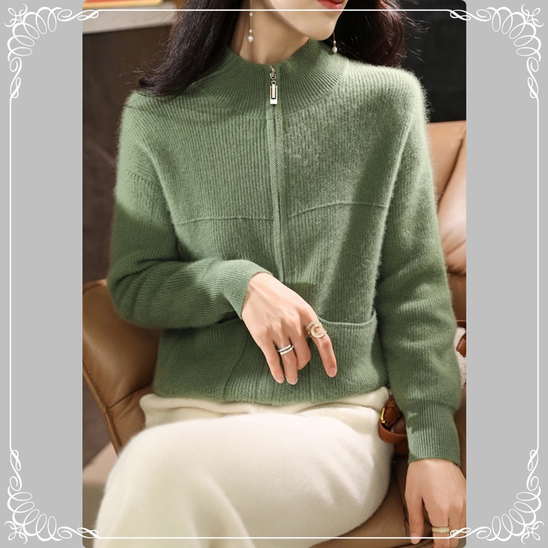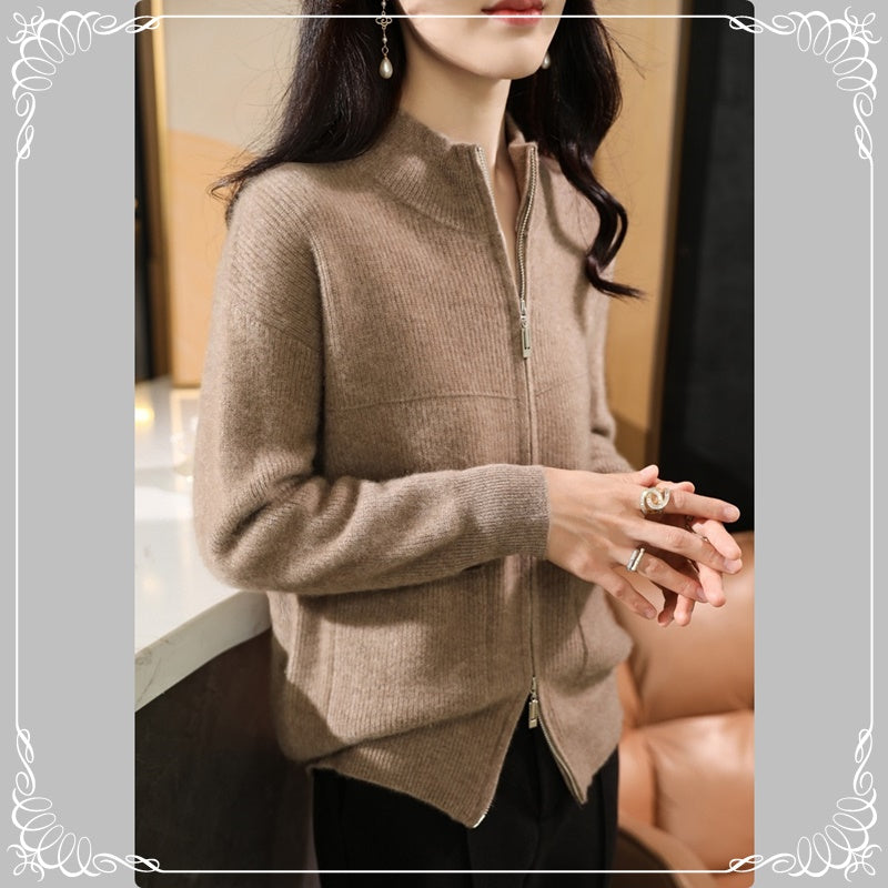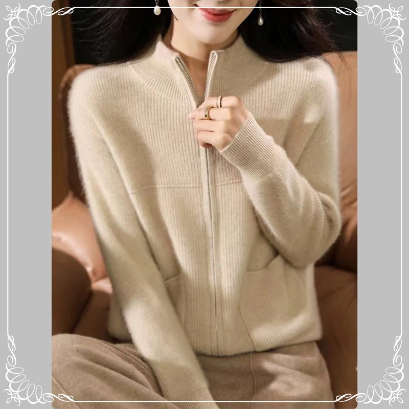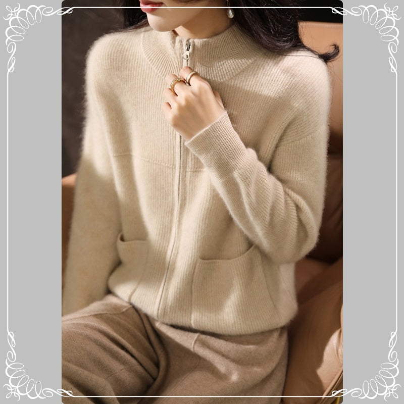 半高领 拉链 开衫